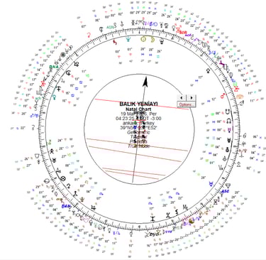 Türkiye Ankara koordinatlarına göre 19 Mart 2026 saat 04:23’te Balık burcunun 28 derecesinde bir Yeniay deneyimleyeceğiz. Bu Yeniay, bulunduğu derece ve sabit yıldız Scheat etkisi nedeniyle oldukça sert bir doğaya sahip görünüyor.